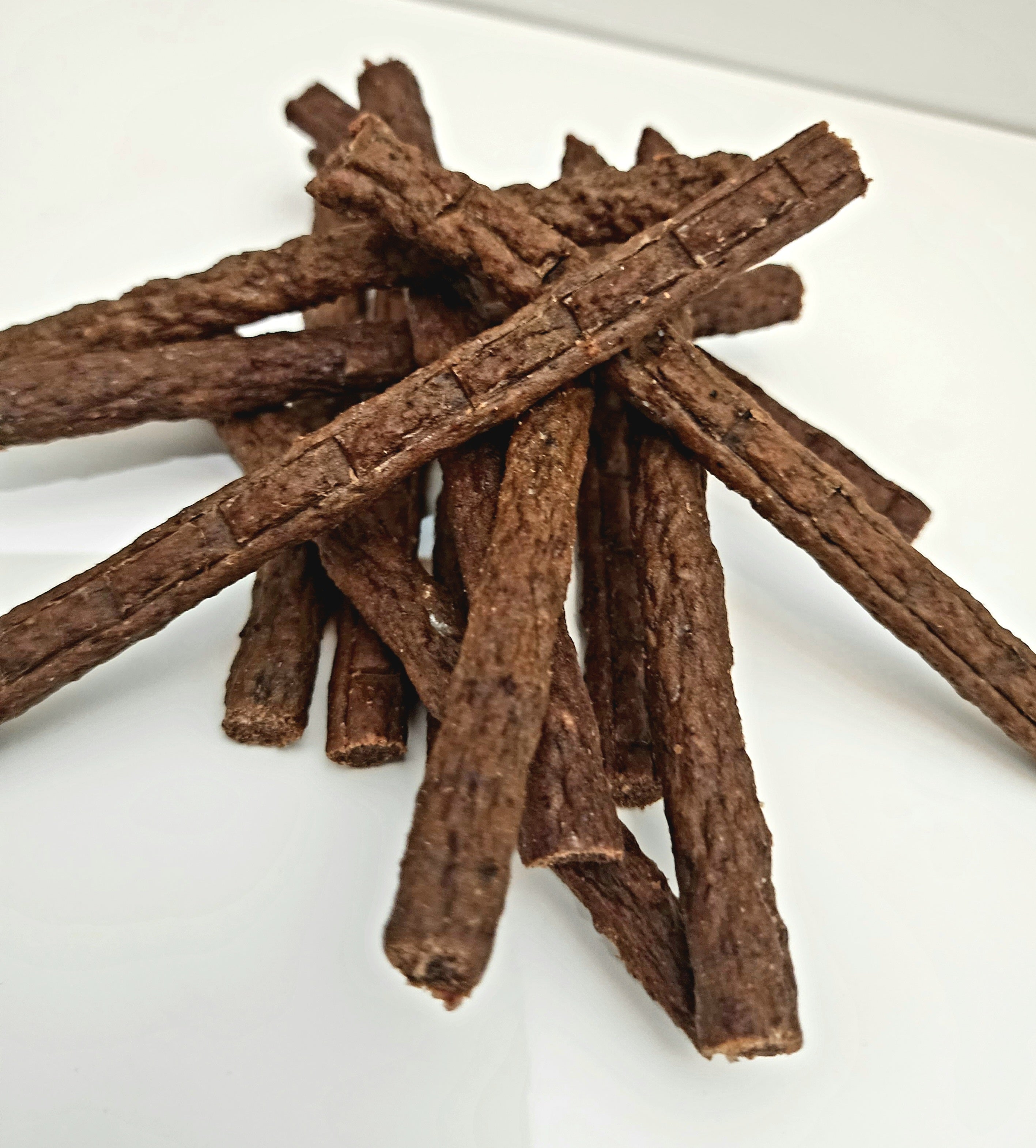 Upgrade your pup's snacking game with Beef Jerky Sticks - a mouthwatering and healthy, gluten-free, wheat-free, corn-free, and soy-free choice. These soft jerky 6" sticks pack a punch of flavor and are perfect for any size. Easy to break in smaller pieces. Treat your four-legged companion to this hearty and nutritious snack that is also perfect for training. Proudly sourced and manufactured in the USA.